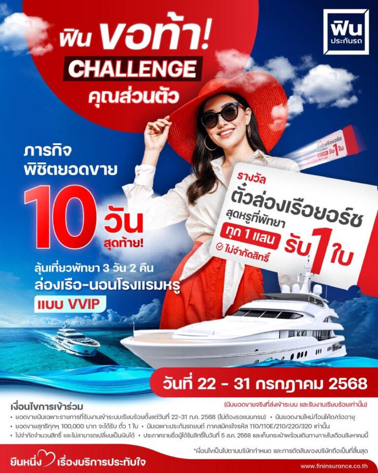 นี่คือโอกาสทองที่จะเปลี่ยนความมุ่งมั่นของคุณให้เป็นประสบการณ์สุดพิเศษ! ✨ "ภารกิจ 10 วันเท่านั้น! พิชิตยอดขาย 100,000 บาท!" ✅ ตั๋วล่องเรือยอร์ชสุดหรูทันที! ที่พัทยา! ✅ ทริปเที่ยวพัทยา 3 วัน 2 คืน นอนโรงแรมหรูพร้อมล่องเรือแบบ VVIP! ✅ ทุก 1 แสนบาท รับไปเลย 1 ใบ! ไม่จำกัดสิทธิ์ ยิ่งทำเยอะ ยิ่งได้เยอะ! 🔥 🗓️ รีบเลย! โอกาสสุดท้าย! แคมเปญสุดพิเศษนี้มีเวลาจำกัด ตั้งแต่วันที่ 22 - 31 กรกฎาคม 2568 เท่านั้น! *เงื่อนไขเป็นไปตามที่บริษัท #ฟินประกันรถ #ประกันรถยนต์ #FINBROKER